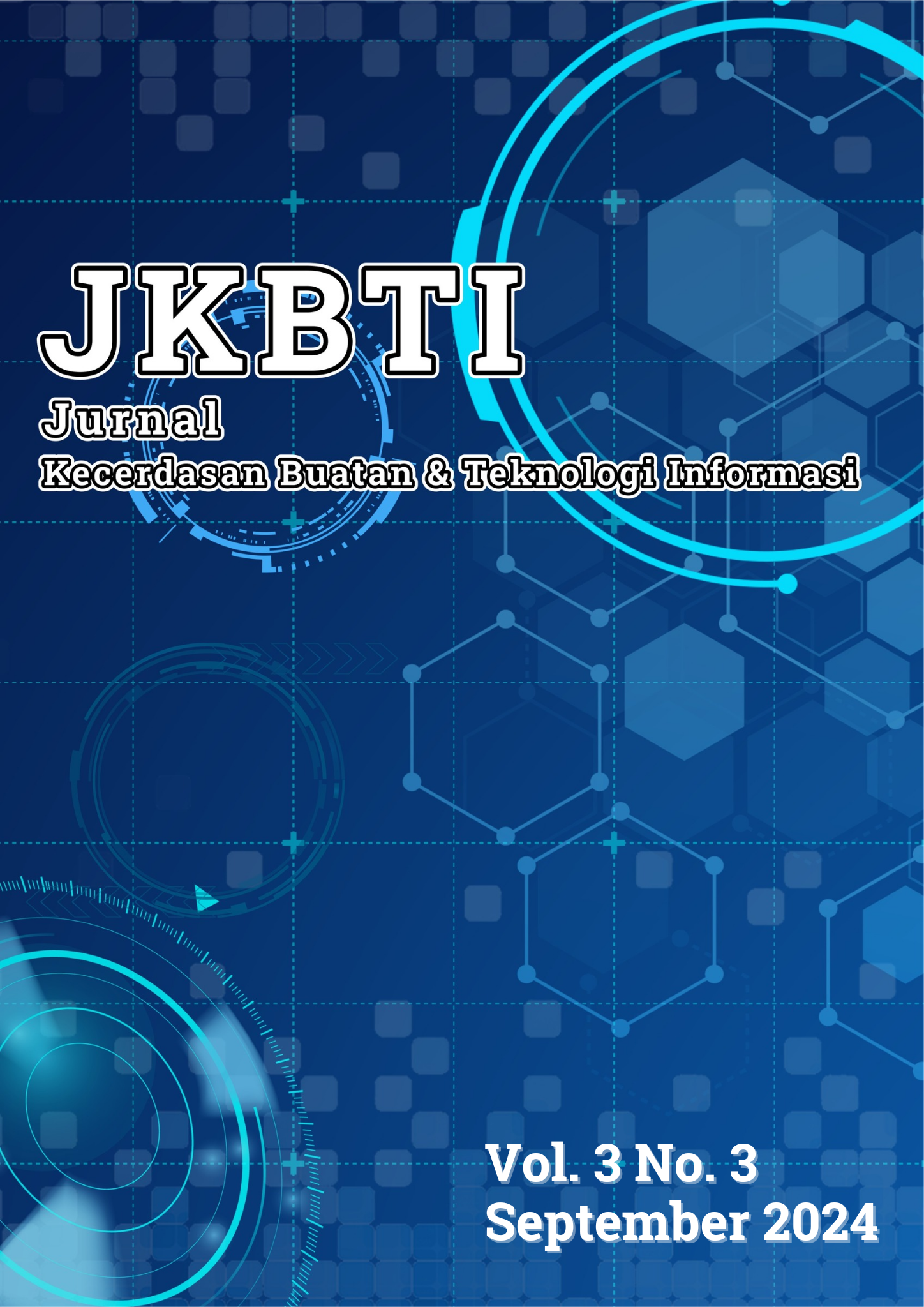 Jurnal Kecerdasan Buatan dan Teknologi Informasi Volume 3, Number 3, September 2024 was published. Jurnal Kecerdasan Buatan dan Teknologi Informasi in this edition has received quite a lot of article submissions, but in the process some of the best articles have been selected according to the results of the review. This edition of the issue contains 5 articles from authors from affiliations, including : Politeknik Negeri Subang, Universitas Bangka Belitung and Universitas Logistik Bisnis Internasional.